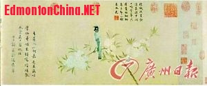 《花鸟图》局部 7 I( D* h% g. s$ ~+ g 文、图/记者 金叶 天津博物馆藏元代著名画家钱选的《花鸟图》手卷,以其隽雅清新的画风享誉中国画史和收藏史,为天津博物馆不可多得的精品之一。( _7 V" j. y) N {3 v