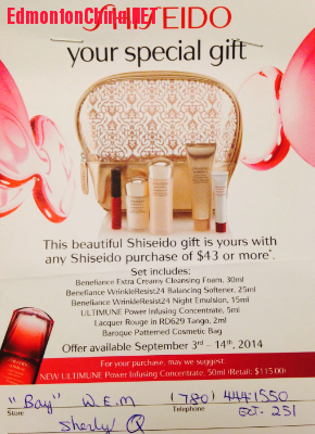 西茂the bay资生堂9月3日-14日满43刀以上赠送六件套礼品:- I& p8 l) T" s! O