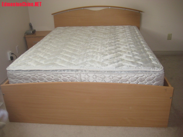 * h2 t0 ]7 r7 p" m" f$ lQueen Size 床,干净名牌硬床垫,床头柜和六屉柜。请看图片,恕不送货。