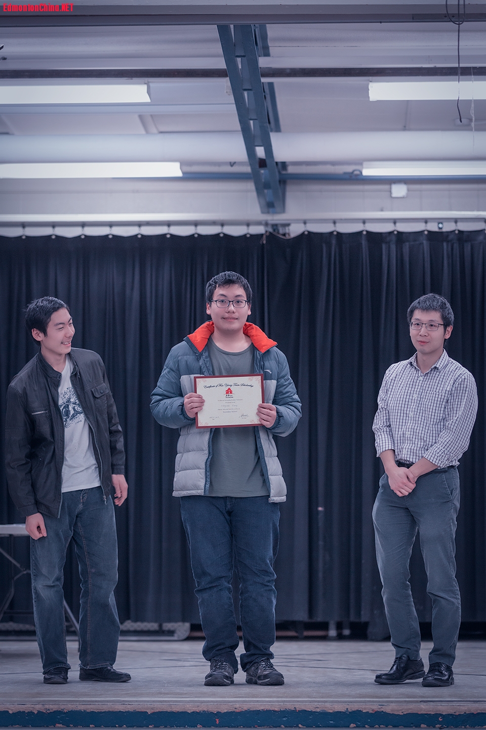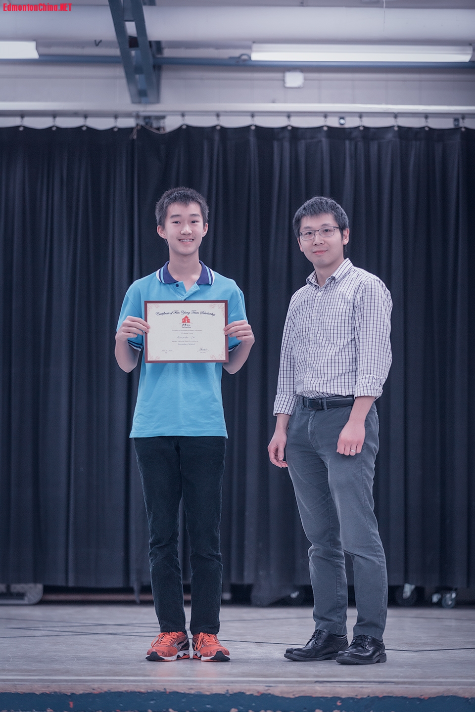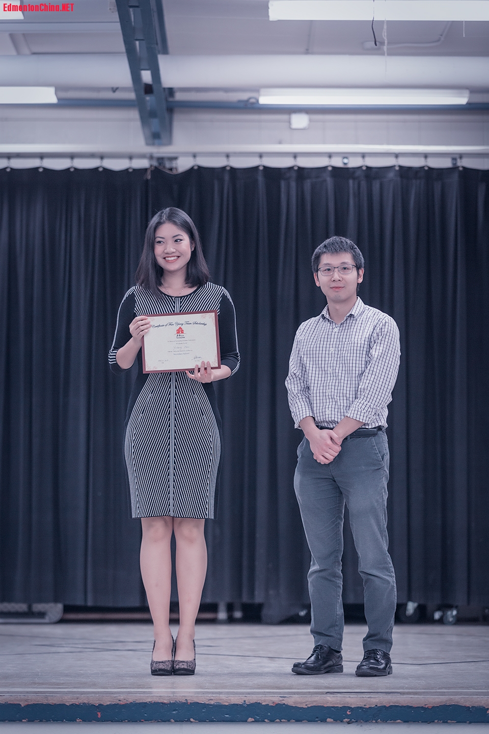 在这个非常适合美美睡个大头觉的周日下午,获奖者和家长们亮晶晶地聚集在Grandview Height School的体育馆里,肩头的雨点和眼睛里的骄傲闪闪地把颁奖大厅亮出了奥斯卡的气场。老杨团队创始人杨帆,爱城著名华人家庭医生David Sun和埃德蒙顿公立学校董事会董事Nathan Ip分别为小学、中学和大学组共22位获奖者颁奖。