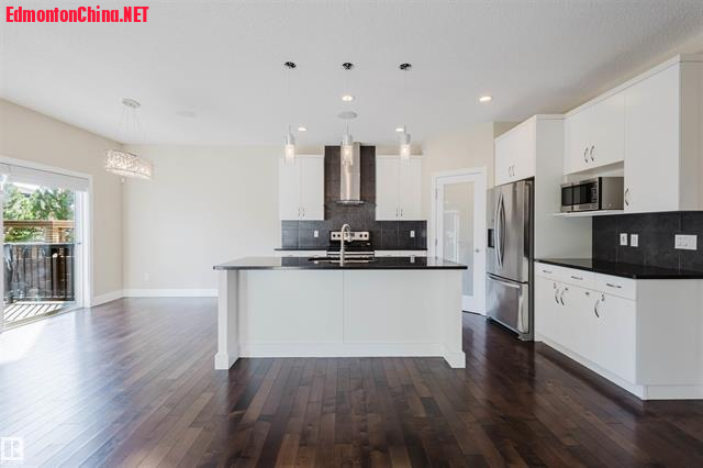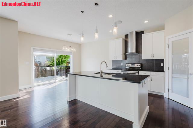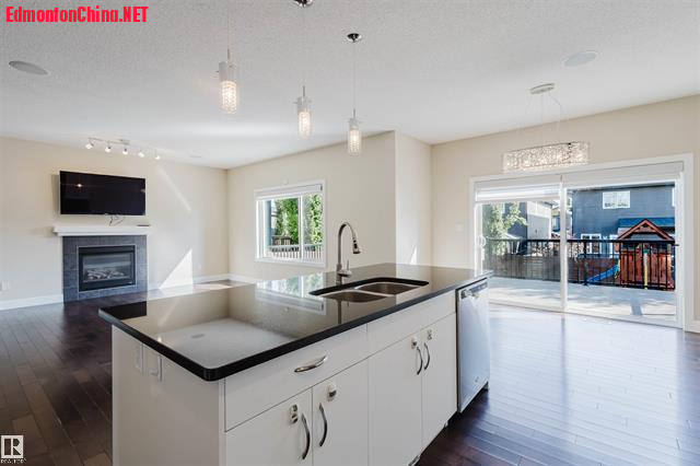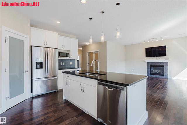 9 \1 g3 c; \$ i6 k* M( z# ?" ?1 m5 v步入室内,主层开放式设计,9尺挑高天花板开阔明丽,配备了宽敞门厅、带法式双拉门的书房,硬木地板和瓷砖交相辉映!明丽客厅安装了燃气壁炉,阳光从超大明窗翩然洒落,您可静赏私家庭院美景!美食厨房安装了整体时尚橱柜,超大饭岛同步花岗岩台面,全套SS级电器齐备,更有超大步入式餐具食品存储间!