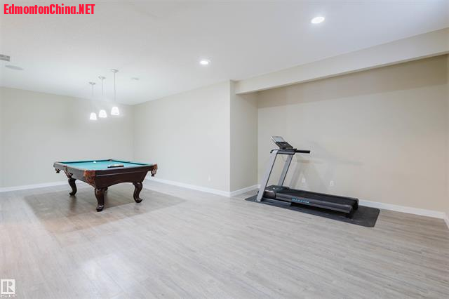 ' B: V* E7 A" P' ?8 ?整装地下室设有超大娱乐房、第四间卧室和3pc卫浴间。私家庭院安装了双层工艺甲板,是居家娱乐休闲的不二之选!