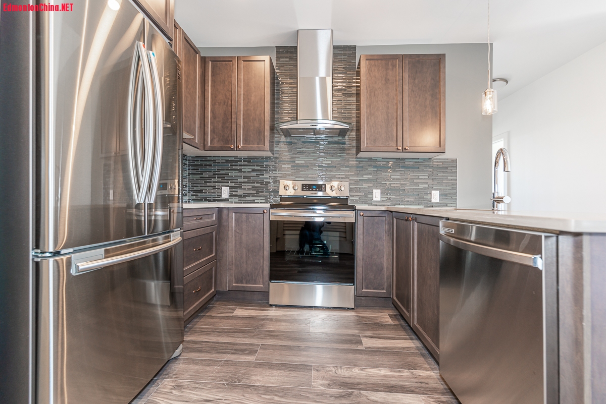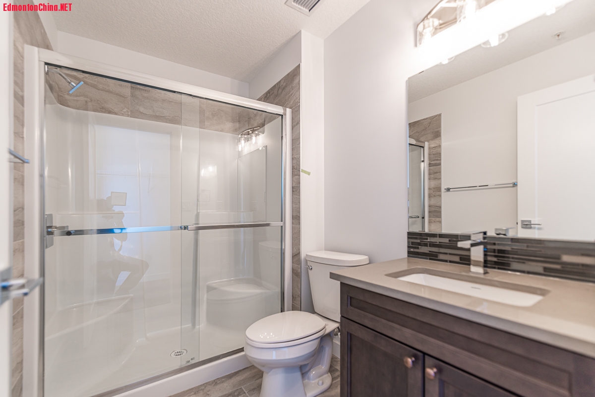 双卧双全卫浴间。主卧安装了层压式地板,坐拥9尺天花板,时尚厨房安装了Espresso枫木橱柜,石英台面熠熠生辉,全套不锈钢电器,品牌抽油烟机,更有整体马赛克玻璃防溅墙。' t' S) J' Y' V, B0 B