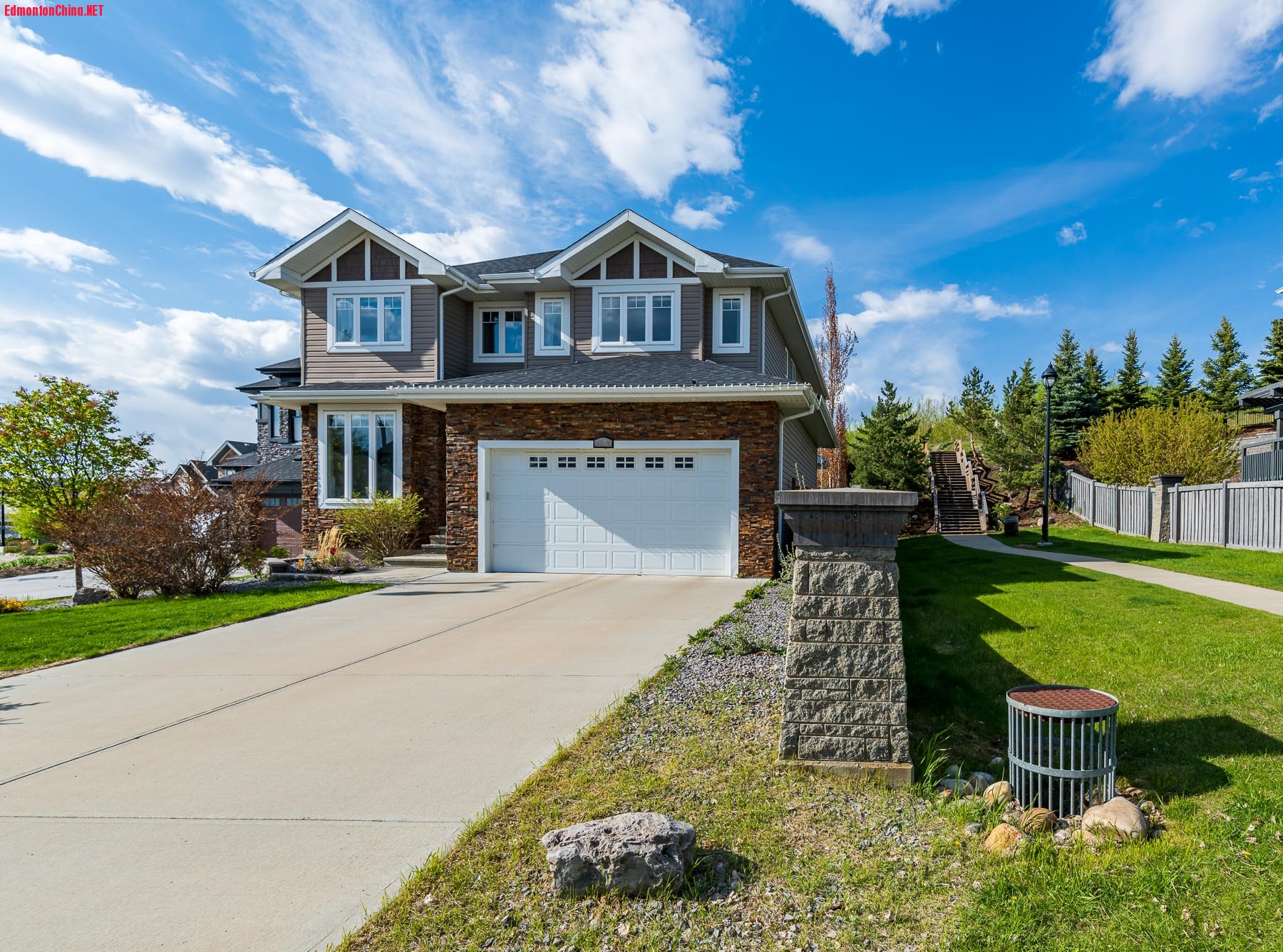 A TRULY REMARKABLE CUSTOM-BUILT over 3500 sqft of livable finished space 2 storey with TRIPLE-TANDEM garage located at the HIGHEST point in Edmonton! Sitting on over a 10,000 sqft lot and backing onto the Southwest Highland natural area there is lots of privacy to enjoy. The main floor features office, laundry and great room with stone wall & 18’’ ceilings. Total of 3 spacious bdrms upstairs including an amazing master bedroom with large ensuite and walk-in closet. Basement development was completed by the builder which offers another bdrm with a full bath. Professionally finished landscape offers underground sprinklers, maintenance-free deck with a built-in fire pit and beautiful variety of plants. Recent update including new high efficiency water tank and R60 attic insulation .Walking distance to K-9 school, trails, and parks and shopping. Close to Anthony Henday, Terwillegar Rec Center. A 10 which you must see! X! [* N7 x4 M5 K2 \+ W& ^6 S8 b