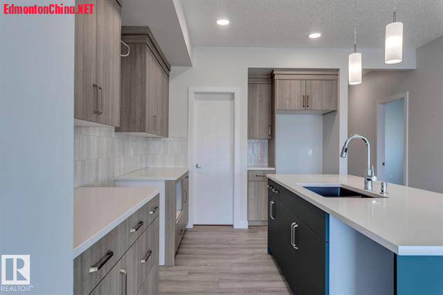 v; V3 A' o- D9 f5 k9 H; ^" iWelcome to the Paragon by Look Master Builder — a stylish 4-bed, 3.5-bath two-storey home on a quiet cul-de-sac with a MAIN FLOOR BEDROOM & ENSUITE. Main floor features include an oversized garage, open-concept layout, large kitchen island, full-height backsplash, cozy fireplace, and a walkthrough mudroom with bench and hooks leading to the pantry.