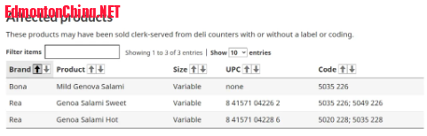 根据食品召回警告,涉及产品包括Rea品牌的甜味热那亚萨拉米(Genoa Salami Sweet)、辣味热那亚萨拉米(Genoa Salami Hot),以及Bona品牌的多种规格淡味热那亚萨拉米(Mild Genova Salami)。- ~6 d' r" `2 I" A