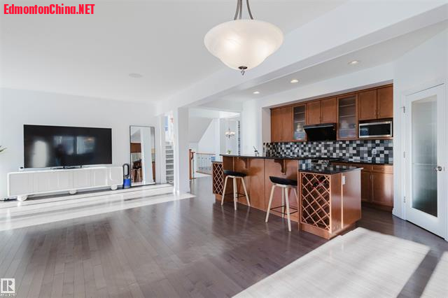 楼上设有一间带超大窗户的居家客厅,豪华主卧套房配有私人阳台、宽敞的步入式衣帽间、5pc卫浴间宛若SPA会馆!另外2间宜居卧室共享另一套4pc卫浴间。6 i, U/ b$ ] r: I