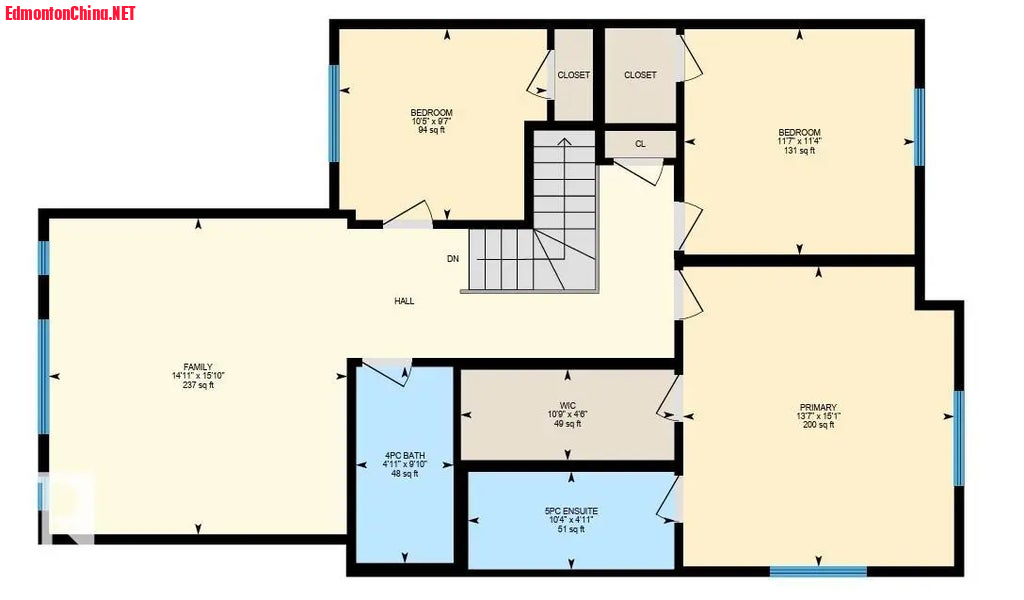 上层全新地毯:超大娱乐厅+三间宽敞卧室!主卧配步入式衣帽间(带定制隔层)+4pc独立卫浴!