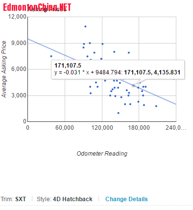 此车 Black Book - trade in price, low $3,383 - high $5,783