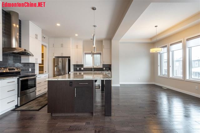 Welcome to prestigious "One at Windermere", a vibrant community offering proximity to the river valley, stunning modern architecture and convenience. This Dolce Vita built 2667 SF home is uniquely situated on a small plateau, facing a park and within walking distance to new schools. The main floor is bright and open, featuring 10' ceiling height and 8' doors. The kitchen is upgraded with upper cabinets all the way to the 10' ceiling, beautiful granite counter tops and enormous pantry area. A formal den with double French doors completes the main level.7 A# s! j& M# |7 b