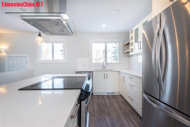 |. y1 E+ U9 G9 ~( J: V, OLendrum Place DELIGHT - Professionally renovated bungalow home from top to bottom in highly desirable Lendrum Place! Over 2,000 sqft developed living space, 3+1 bedrooms & 2 full baths with a fully finished basement & oversized detached double garage. Brand new laminate flooring throughout main floor & carpet in basement; Brand new & open concept kitchen with modern & sleek cabinets, SS appliances Quartz counter-top & tile backsplash. Newer vinyl windows/furnace & fresh paint throughout. Brand new baths, lighting fixtures & upgraded plumbing & 100amp electrical service & new vinyl windows – no expense spared in reno!F/F basement boasts a HUGE recreation room, a good sized bdrm and a full bath. Walking distance to Southgate mall; Steps to Lendrum Place Park with a water park built this year, Lendrum Elementary School & Avalon Junior High and quick access to UofA.) _7 M# r6 ]) V( J- V y