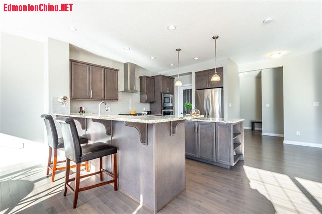 $ M; v0 |0 L; l/ r7 O1 |5 V% w客厅与厨房相连,设有燃气壁炉。楼上三间宽敞卧室,主卧设有超大双人可步入式衣橱、全卫浴套间。后院藩篱已固、景观完成。位置优越,社区对口K-9名校DR. LILA FAHLMAN School ,周边商超林立、酒吧餐馆众多,驱车可到达A-Henday, 111St, 市中心 和大学!
