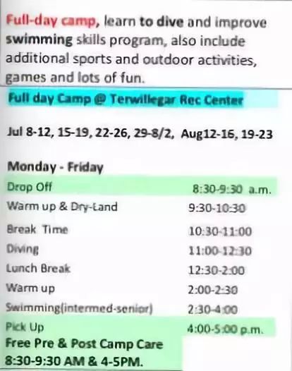 7 `. }, d: U# C0 O- d% q-上午跳水 camp 9:30-12:30 pm