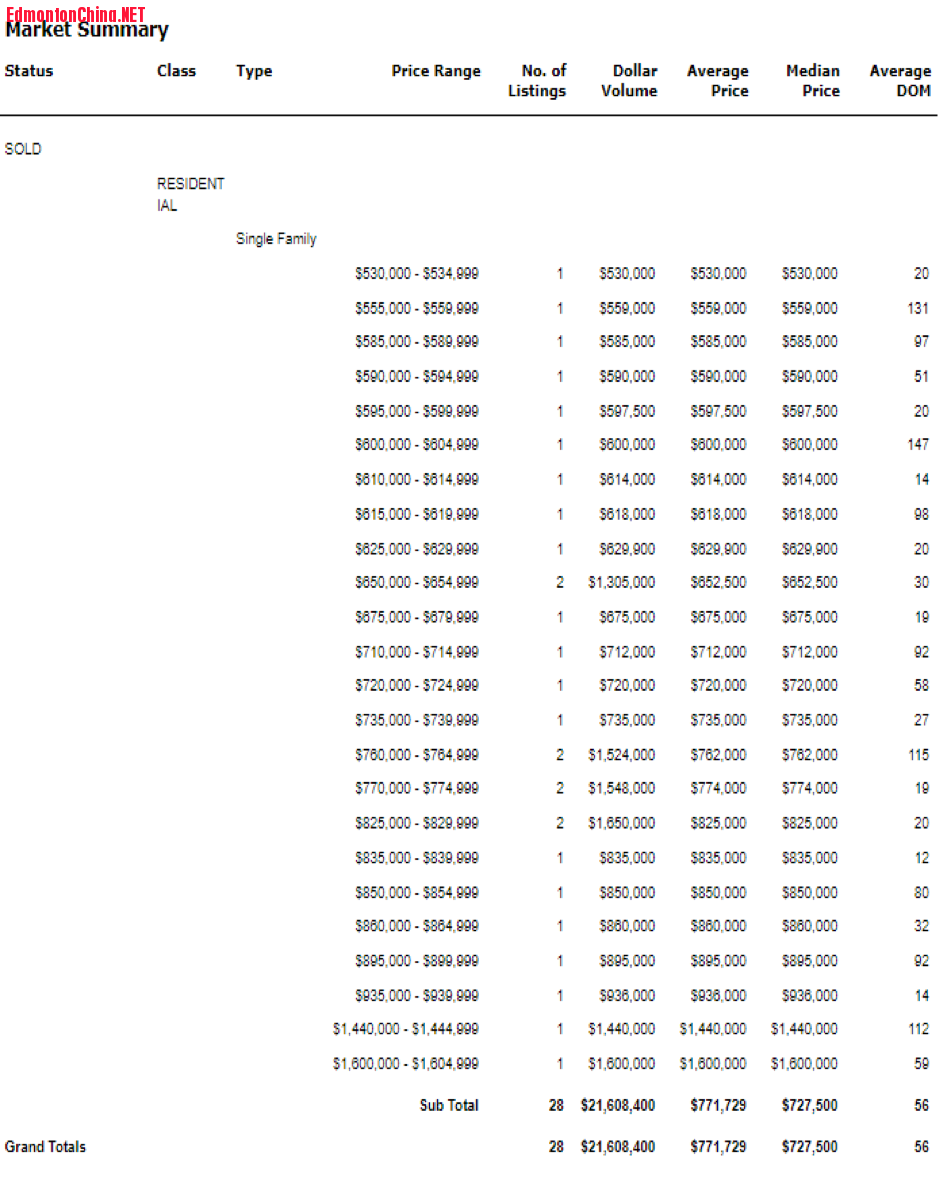 在过去12个月里 (截止至April 13, 2020) MacTaggart 售出的独立屋(包括无物业管理费的双拼)共有28套。