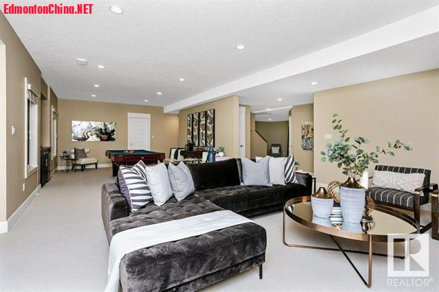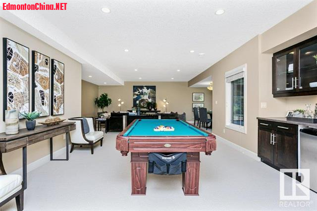 ; L7 w- i7 X/ A; k6 d' F! c B8 e8 BWalkout地下室专业整装,安装了舒适地暖,冬暖夏凉!另设有一间娱乐房(带小酒吧)、家庭影院、健身房、第四间卧室+全卫浴间。$ y! K$ D9 E: P0 B. {0 K