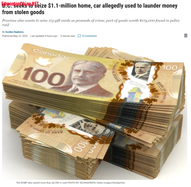 3 D. C" p: s! F* J/ `4 v据BC省的民事没收诉讼文件显示,这对夫妇从2024年11月至2025年3月期间,不仅持有并销售偷来的商品,还涉嫌通过洗钱方式处理犯罪所得。/ k; D& I0 X" `7 ~, c! F: ]