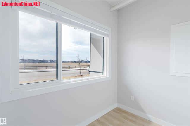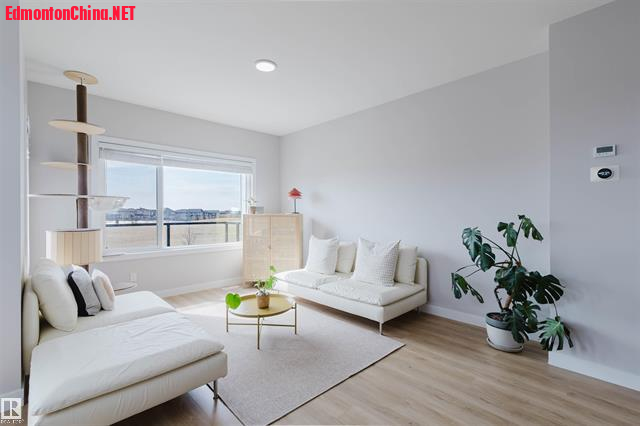 Welcome to this stunning 2-storey END UNIT townhome in One at Keswick—AIR CONDITIONED and FACING THE PARK! This beautifully designed home blends comfort, style, and functionality. The ground level features a convenient den/office, perfect for working from home. The open-concept main floor offers a bright living room with a large window and access to a balcony showcasing unobstructed southwest park views. The modern kitchen is equipped with white cabinetry, quartz countertops, stainless steel appliances, and a pantry. Upstairs, the primary suite impresses with soaring ceilings, abundant natural light, a walk-in closet, and a 4-piece ensuite. Two additional bedrooms, a full bath, and a laundry room complete the upper level. Enjoy low condo fees, an oversized double attached garage, and a prime location within walking distance to schools, parks, and trails, plus quick access to Currents of Windermere. Maintenance-free living at its best!