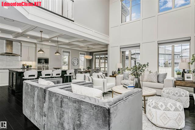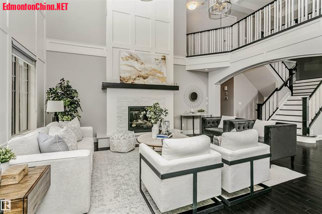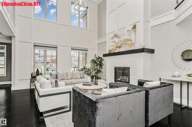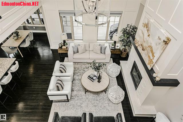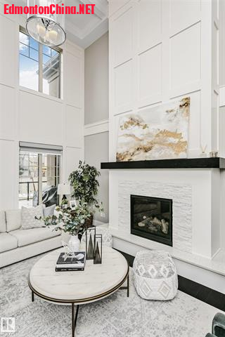 : g: D) o5 X2 u1 i5 |) `* l- o双层挑高大客厅:阳光倾泻而入,现代壁炉墙成为开放式布局的视觉焦点!厨师级厨房配巨型花岗岩中岛+高端嵌入式电器,烹饪与宴客皆气场全开!